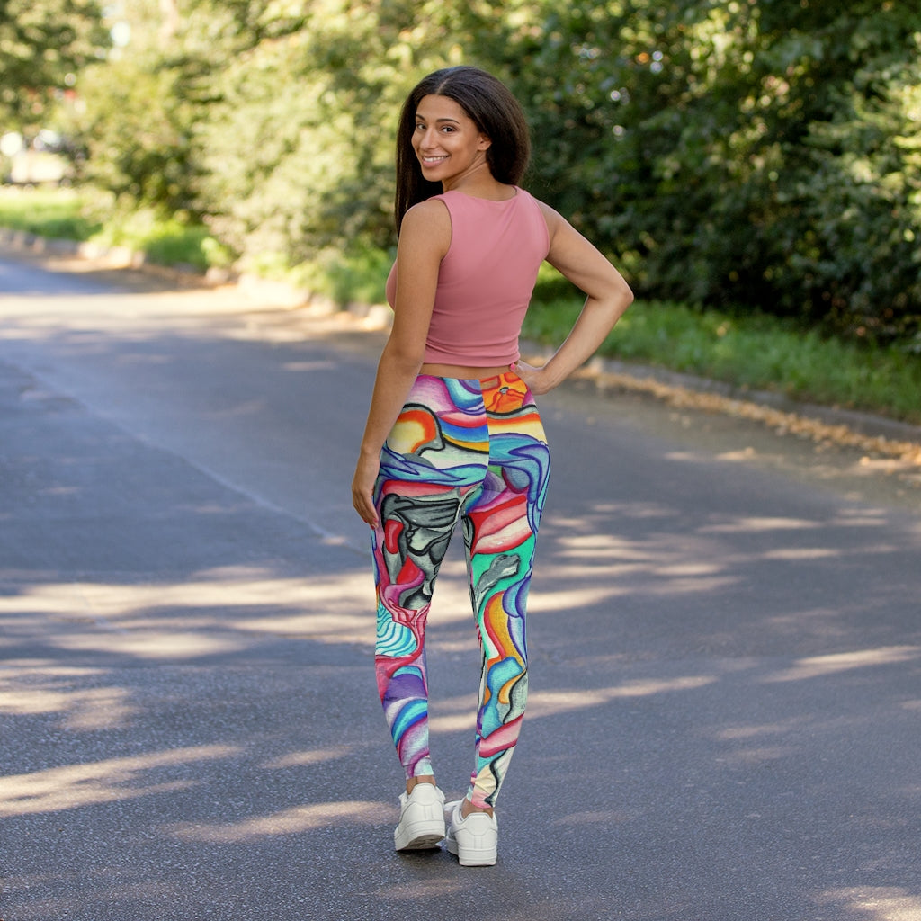 Make a bold statement with these fully customizable leggings. They are made of stretchy fabric that provides the perfect fit while remaining cool and sturdy during workouts. Athleisure has never been this comfy and fun.