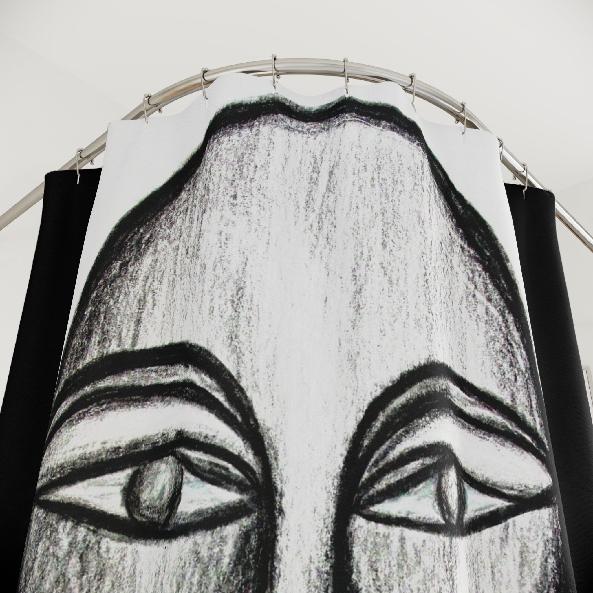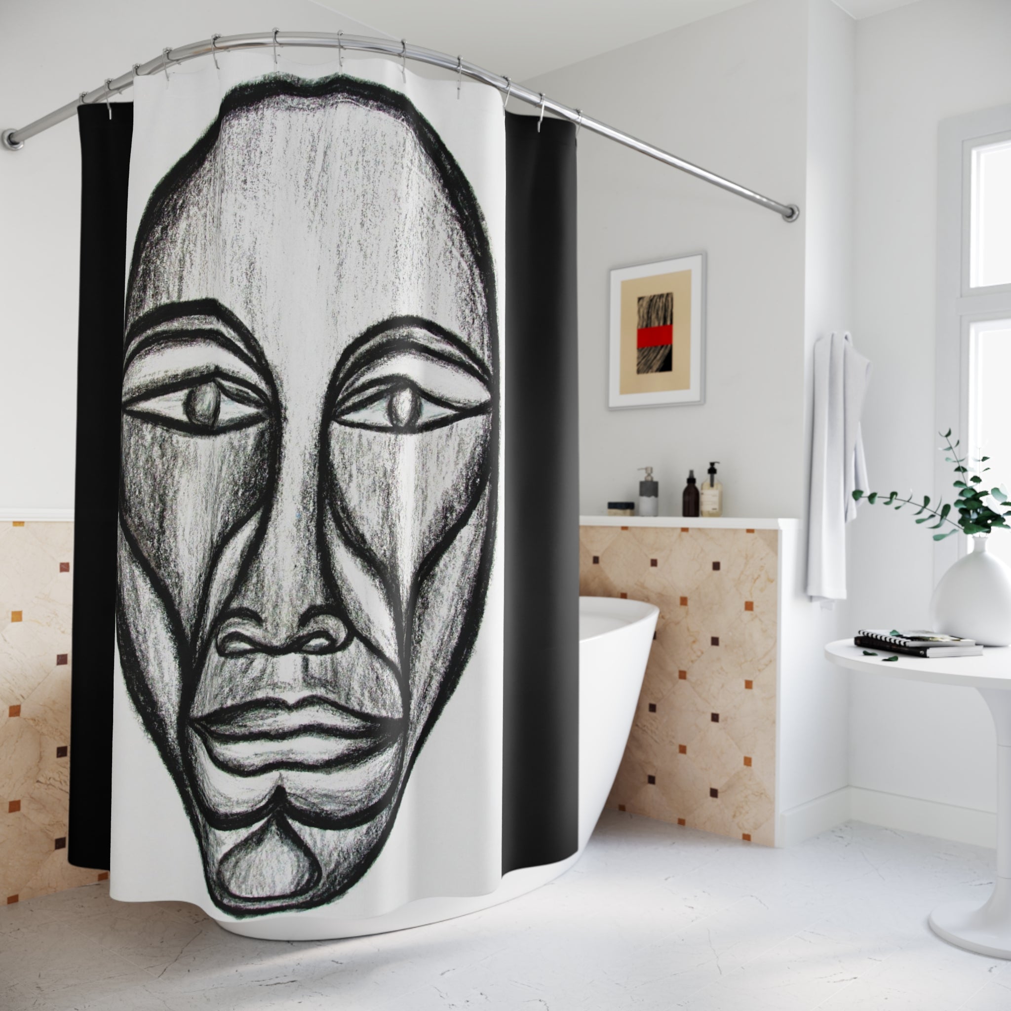 Artistic Black & White Shower Curtain - Abstract Face Design for Modern Bathrooms
