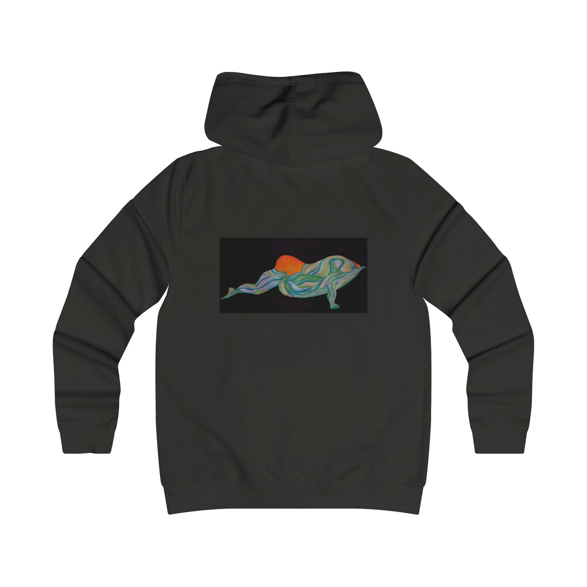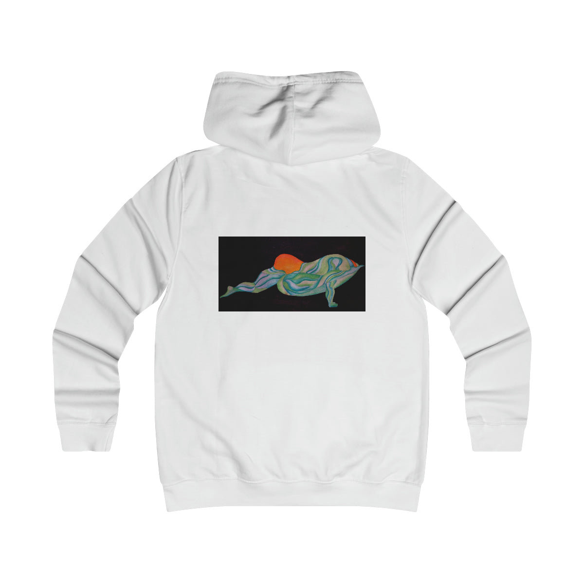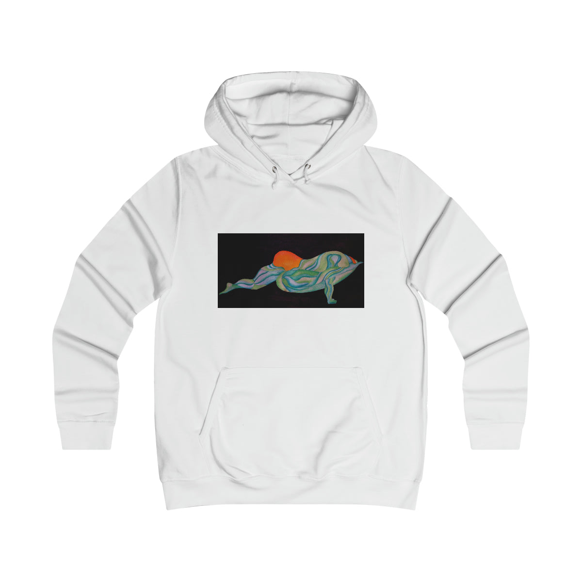 Ladies version of the popular JH001 hoodie. This College Hoodie has a feminine fit and features a double fabric hood, Kangaroo pouch pocket with a small hidden opening for headphone cord feed, ribbed cuffs and hem, self-colored drawstring cords and twin needle stitch detailing.