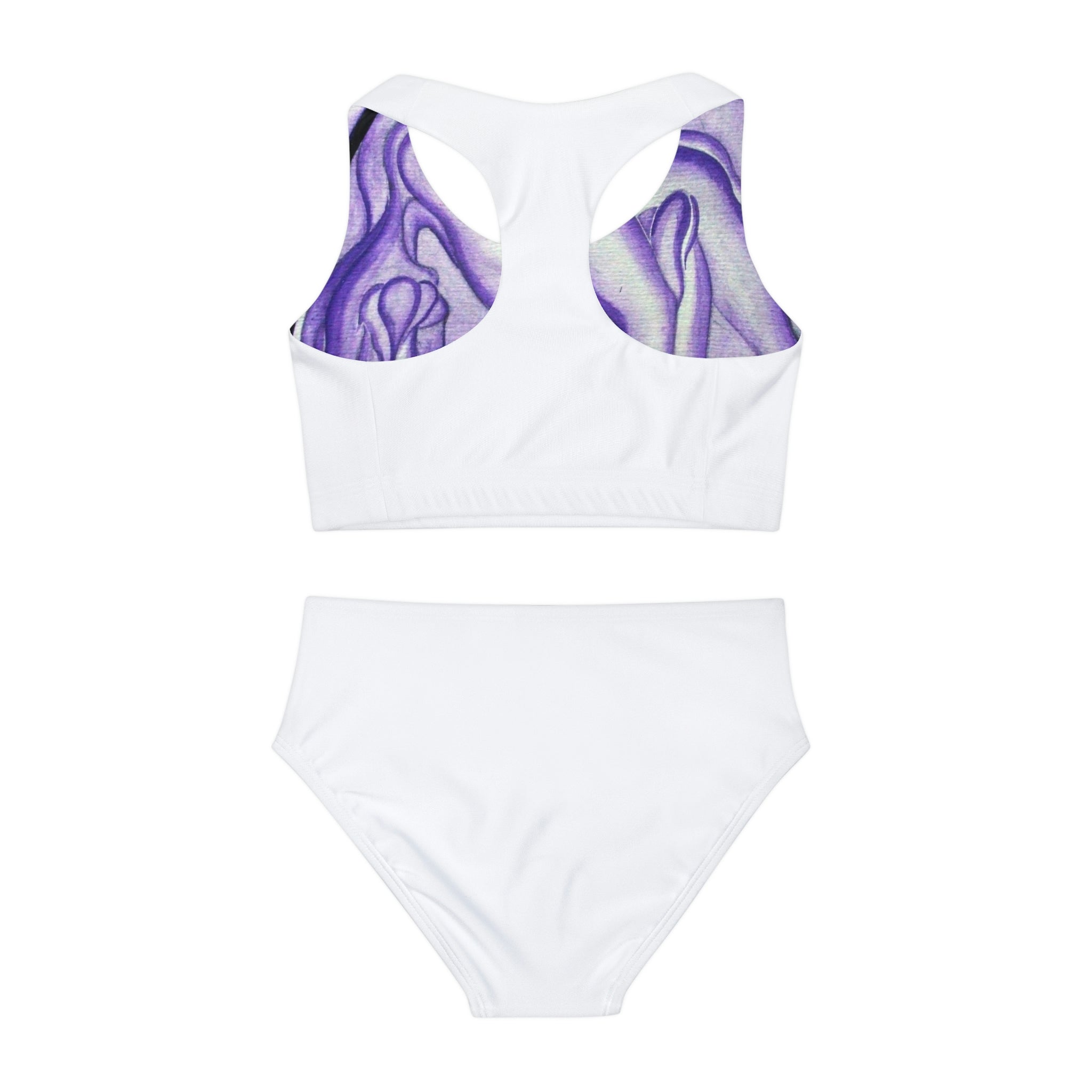 A fun two-piece swimsuit will get your store ready for summer. Customize it with bold colors and original art – we'll print and ship it for you. The two garments are made from 82% microfiber polyester and 18% spandex, creating a four-way stretching, comfortable material.