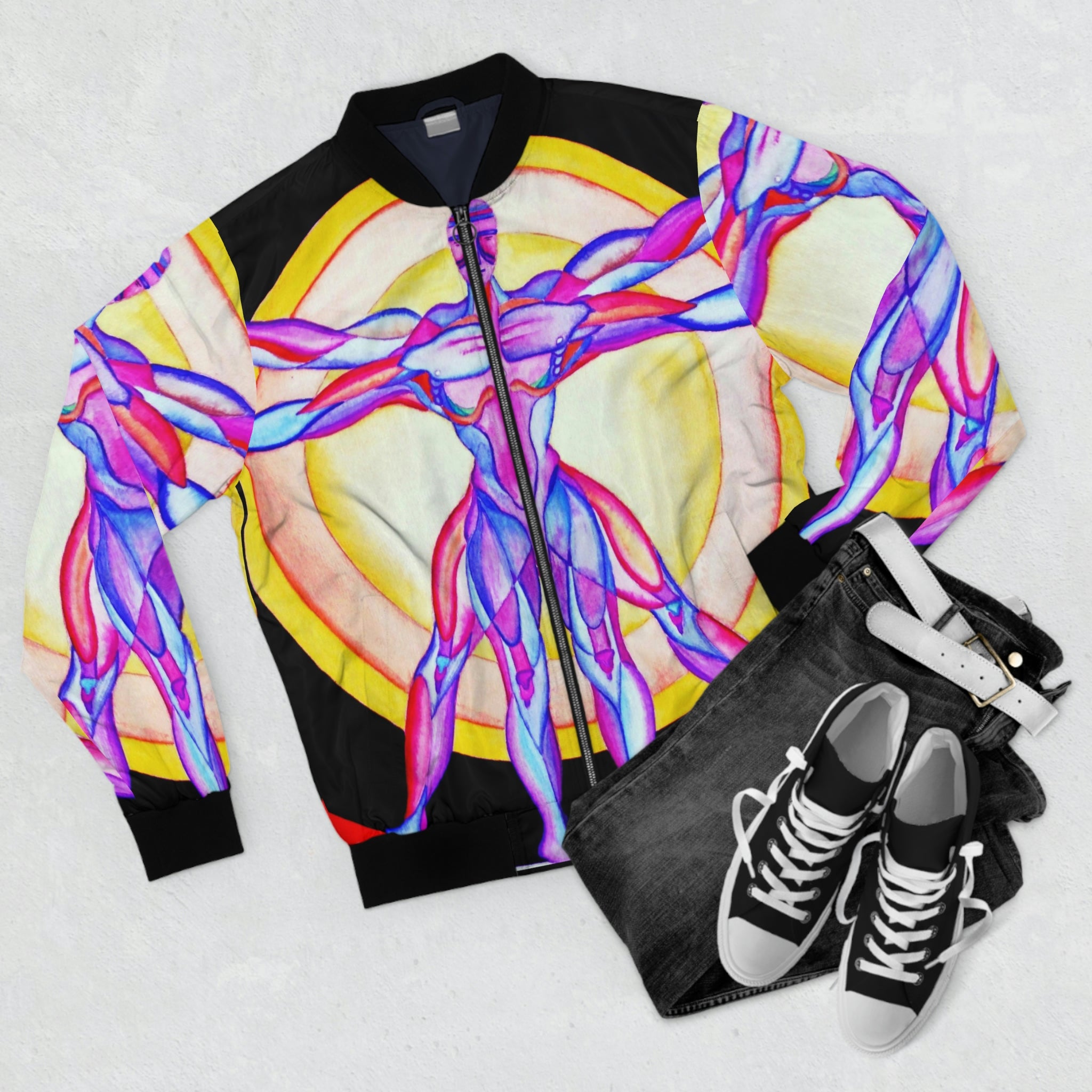 Looking fashionable has never been easier with this men's all-over print jacket with ribbed stand-up collar, elastic cuffs, and elasticized hem. Featuring the classic bomber jacket look, a durable zipper and two pouch pockets, this jacket is ready to take your everyday look a notch higher to reflect your unique personality and style.